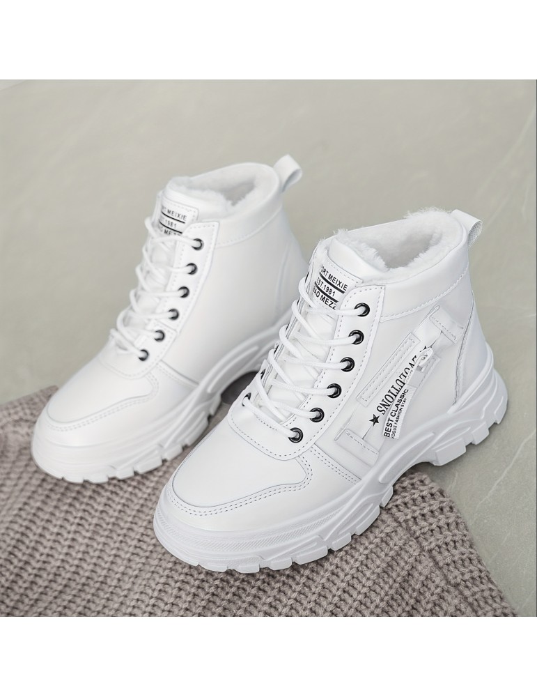 Women's Platform Short Boots, Casual Lace Up Plush Lined Winter Boots, Comfortable Side Zipper Ankle Boots
