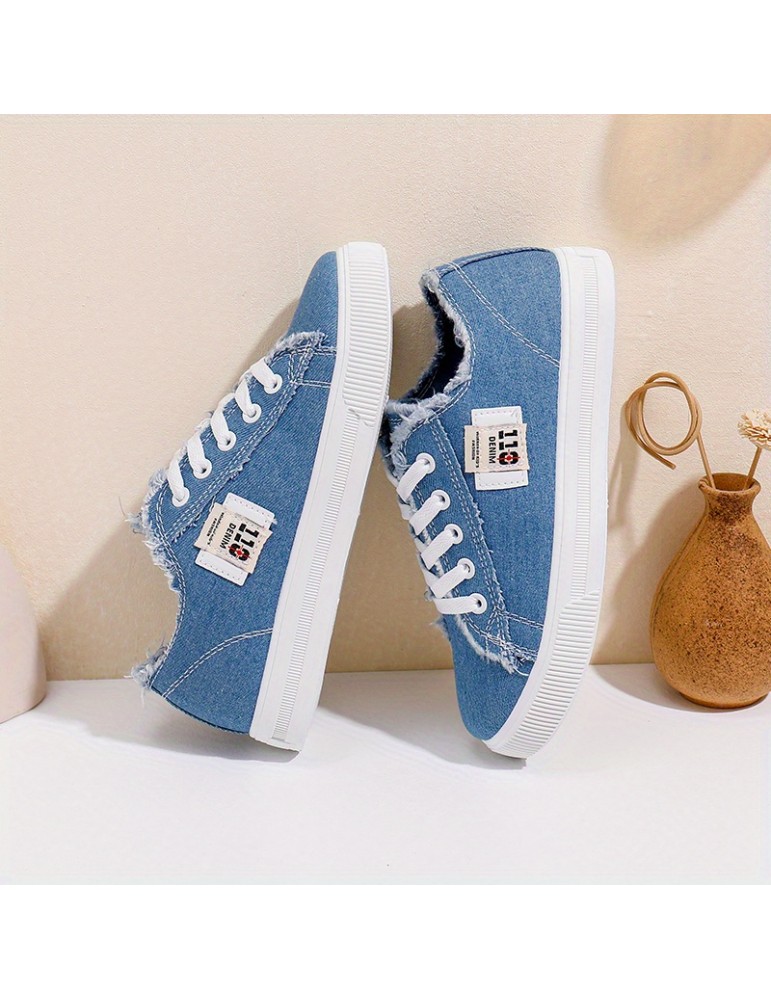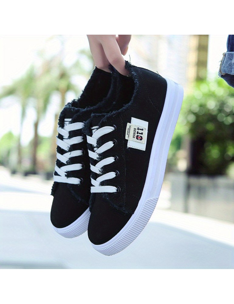 • Women's Classic Canvas Flat Shoes, Solid Color Lace Up Low-top Casual Shoes, Women's Comfy Footwear