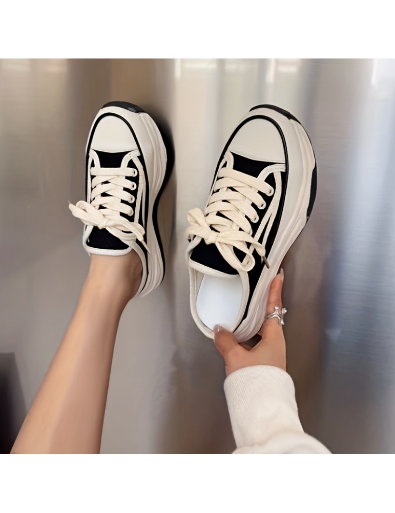 • Women's Platform Canvas Shoes, Casual Lace Up Mule Sneakers, Versatile & All-Match Outdoor Shoes
