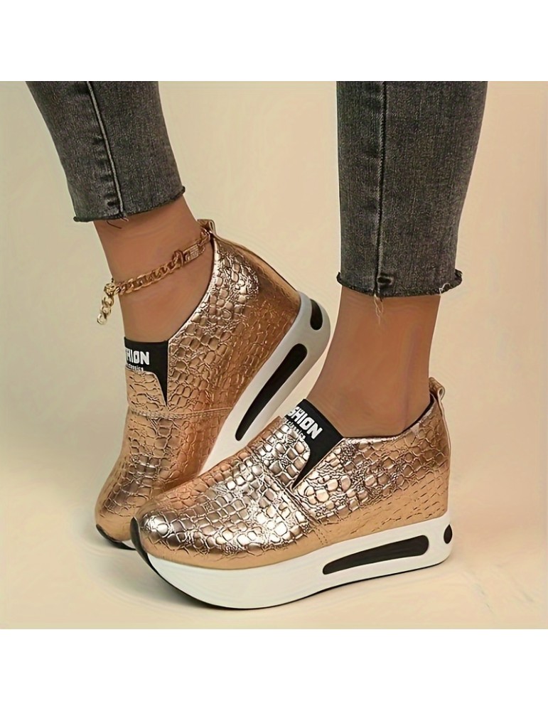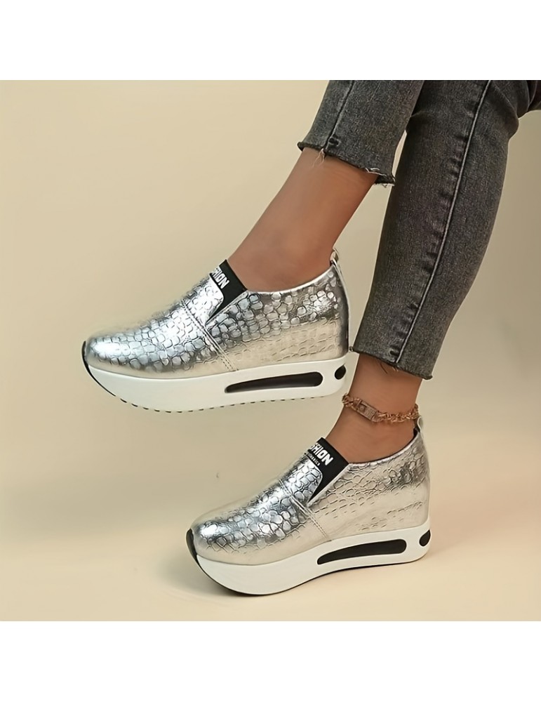 • Women's Crocodile Pattern Platform Sneakers, Fashion Slip On Outdoor Shoes, Comfortable Low Top Shoes