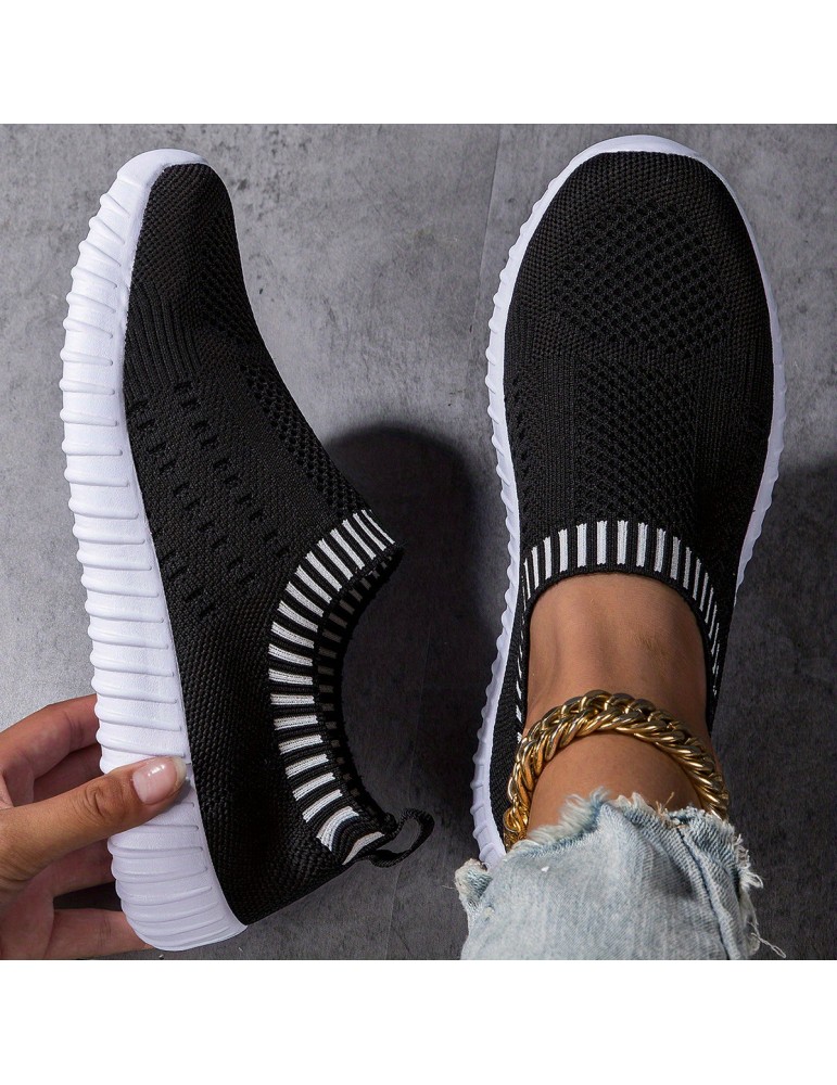 Women's Mesh Sports Shoes, Comfort Knit Low Top Slip On Running Shoes, Casual Breathable Walking Shoes