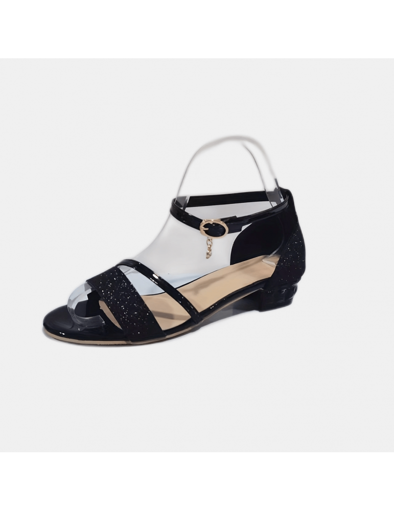 womens glitter low heels sandals fashionable open toe ankle buckle strap shoes elegant party dress sandals details 1