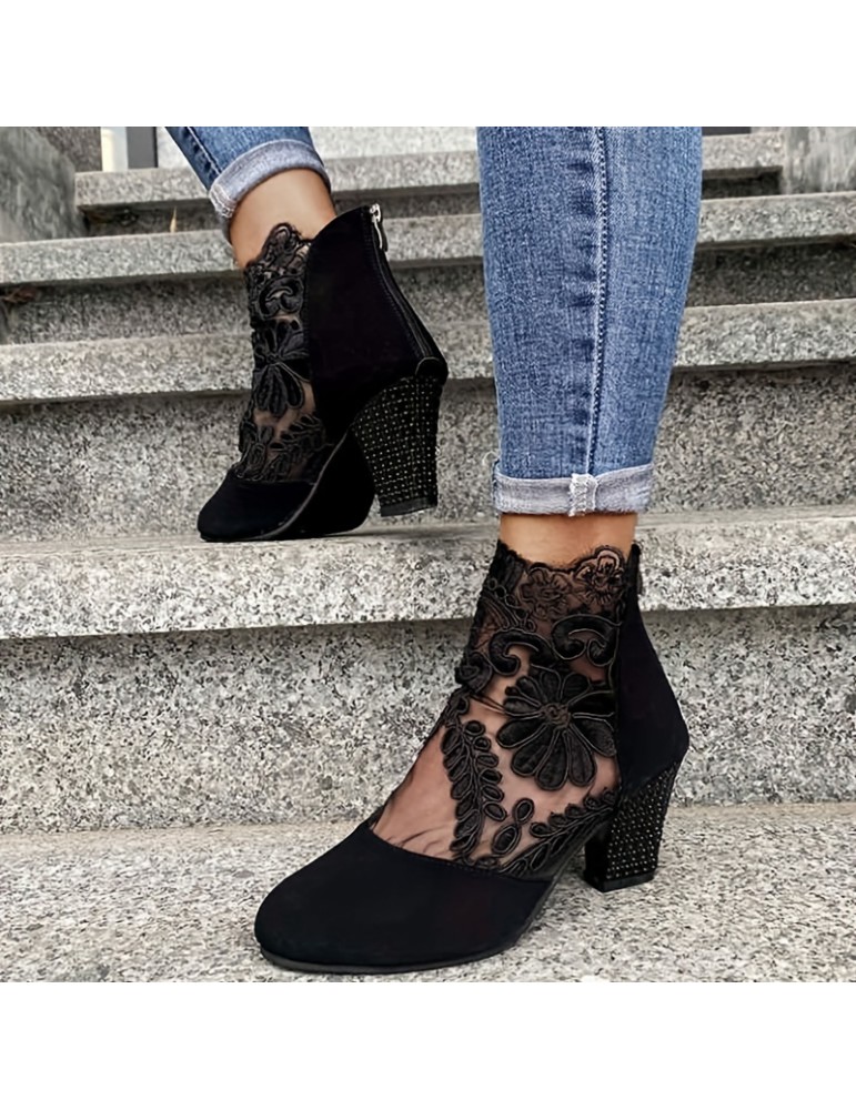 • Women's Block Heeled Sandals, Trendy Lace Back Zipper Pumps, Fashion Versatile Dress Heels