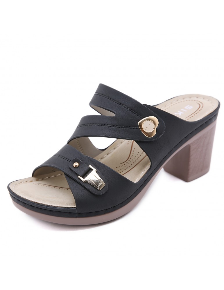 womens hollow out chunky heeled mules metal buckle seam strap open toe slip on sandals womens footwear details 1