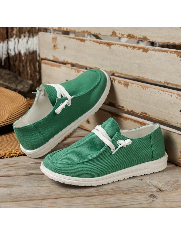 • Women's Low Top Canvas Shoes, Round Toe Slip On Flat Loafers, Casual Walking Shoes