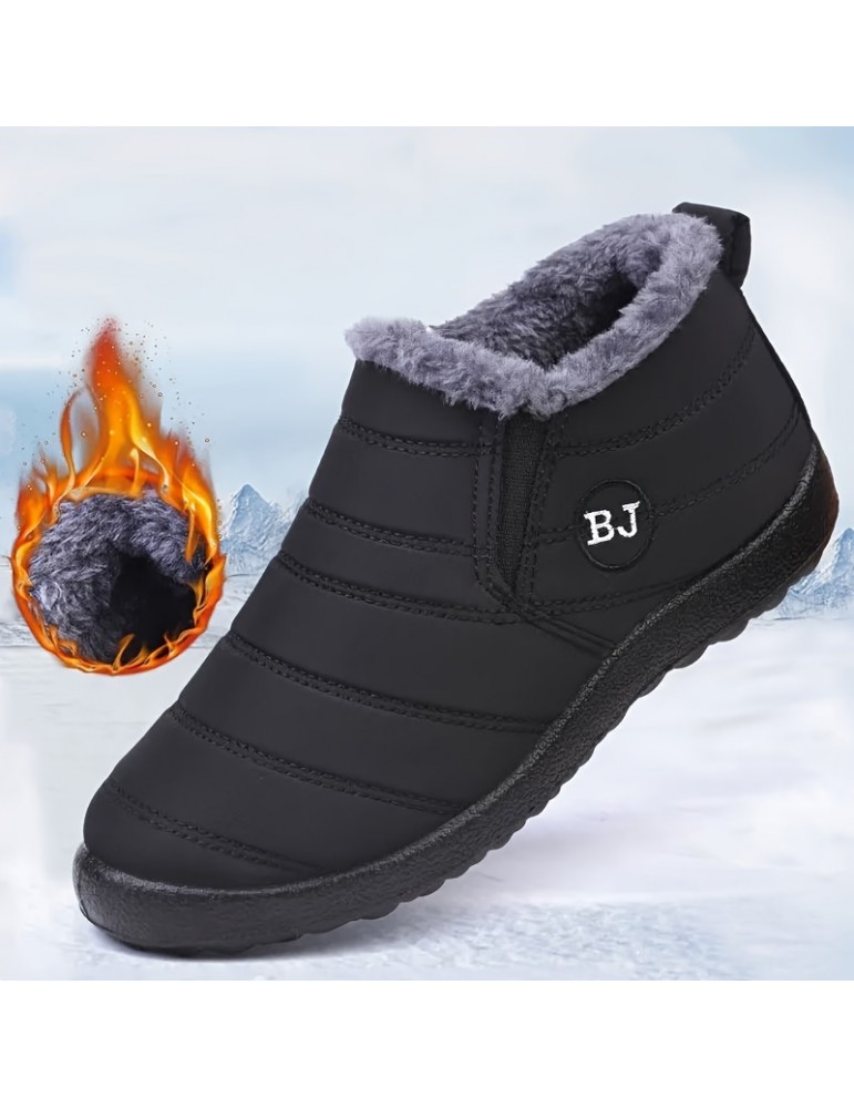 • Women's Plush Lined Snow Boots, Waterproof Slip On Ankle Boots, Winter Thermal Outdoor Flat Boots
