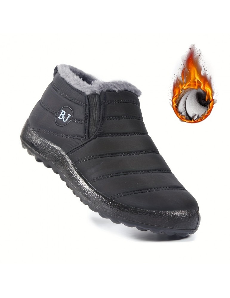 Women's Solid Color Boots, Slip On Round Toe Low-top Velvet Warm Fluffy Non-slip Soft Sole Shoes, Winter Comfy Shoes Women's Solid Color Boots, Slip On Round Toe Low-top Velvet Warm Fluffy Non-slip Soft Sole Shoes, Winter Comfy Shoes