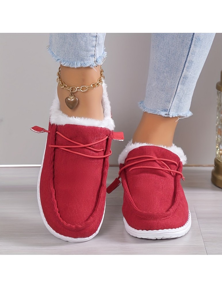 • Women's Solid Color Boots, Slip On Round Toe Low-top Velvet Warm Fluffy Non-slip Soft Sole Shoes, Winter Comfy Shoes