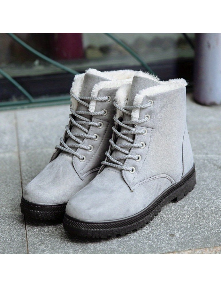 • Women's Solid Color Platform Boots, Lace Up Velvet Warm Fluffy Non-slip Round Toe Outdoor Shoes, Winter Snow Boots