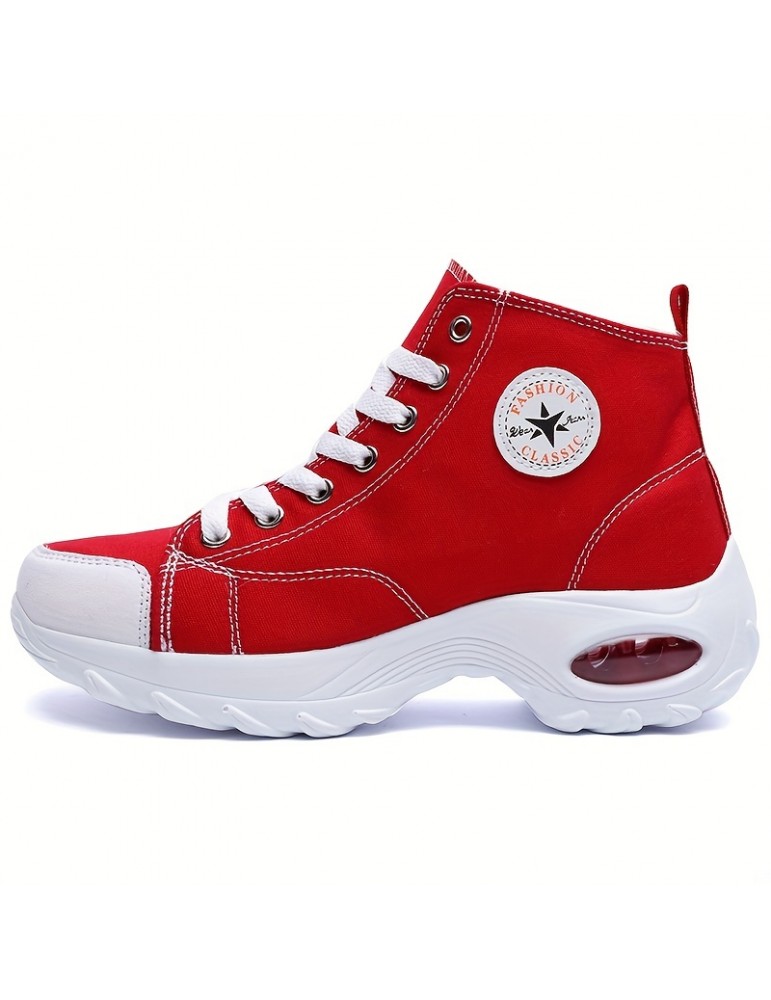 • Women's Leisure Air Cushion Sneakers, Thick Bottom Mid Top Breathable Canvas Shoes, Women's Casual Shoes