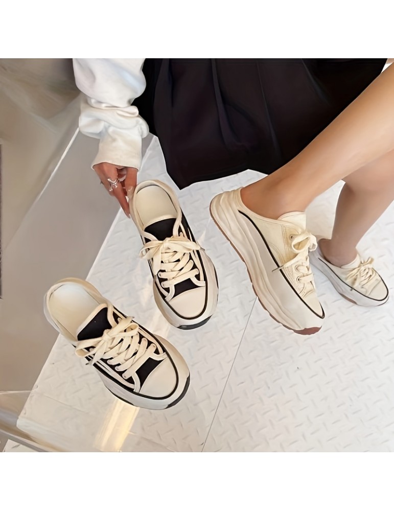 womens platform canvas shoes casual lace up mule sneakers versatile all match outdoor shoes details 0