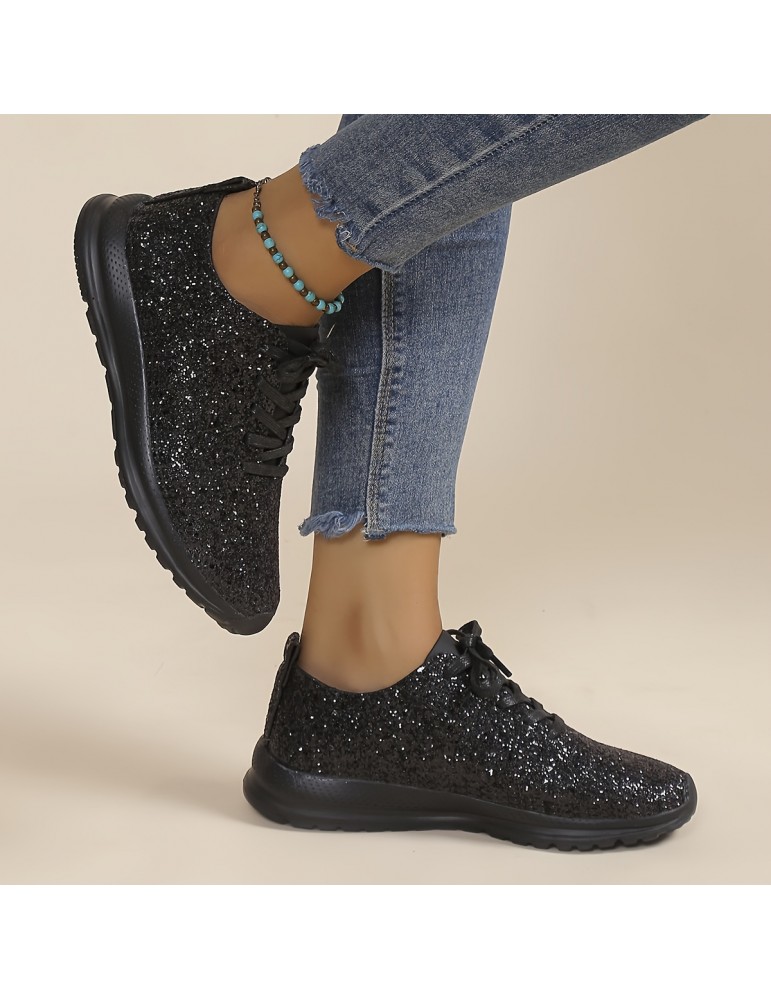 womens glitter sequins decor sneakers casual lace up outdoor shoes lightweight low top walking shoes details 1