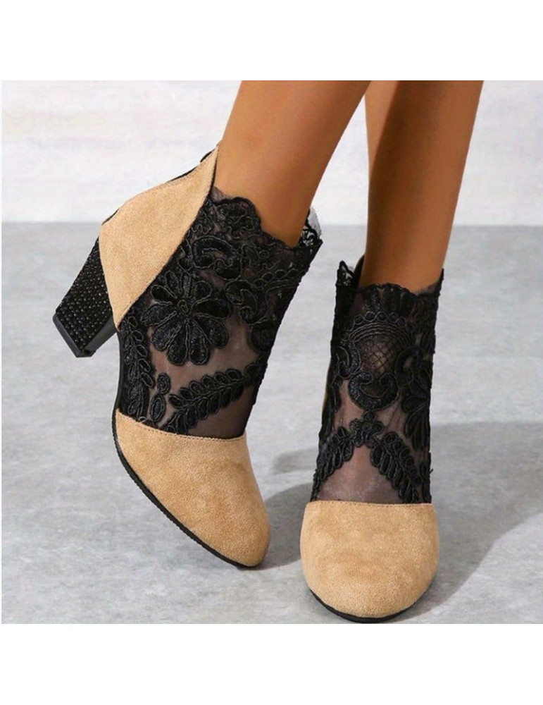 • Women's Block Heeled Sandals, Trendy Lace Back Zipper Pumps, Fashion Versatile Dress Heels