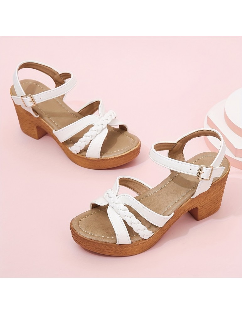 • Women's Braided Chunky Heel Sandals, Casual Buckle Strap Summer Shoes, Fashion Dress Pumps
