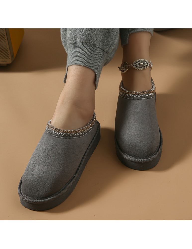 Women's Plush Lined Flatform Boots, Thermal Soft Sole Backless Snow Boots, Winter Warm Outdoor Ankle Boots