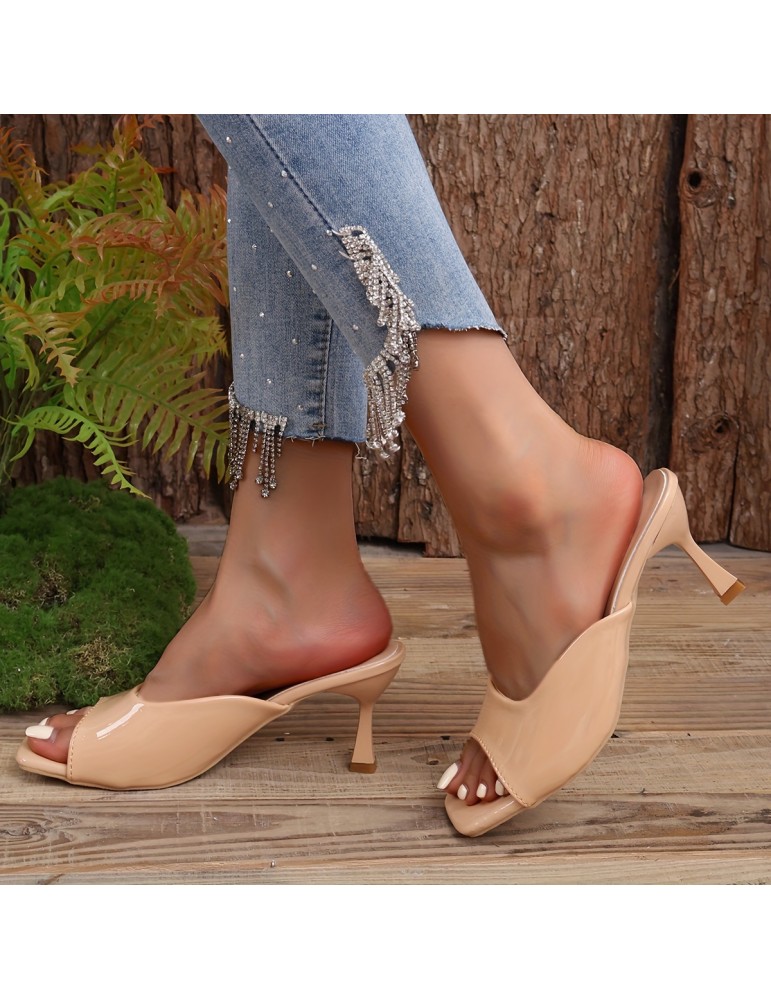 • Women's Square Toe Stiletto Sandals, Fashion Open Toe Slip On High Heels, All-Match Party Sandals