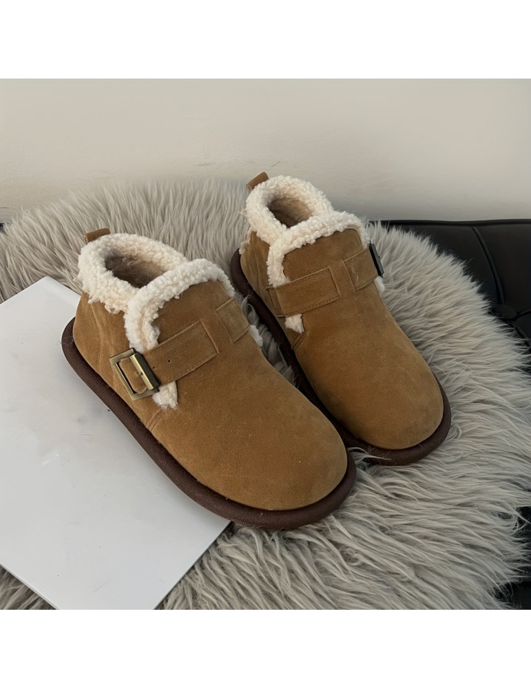 womens thermal lined flat boots buckle decor soft sole winter warm shoes versatile plush non slip shoes details 1
